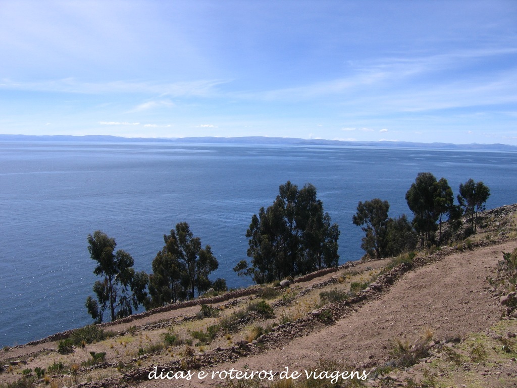 Vista do Lago Titikaka na subida da Ilha Taquile.