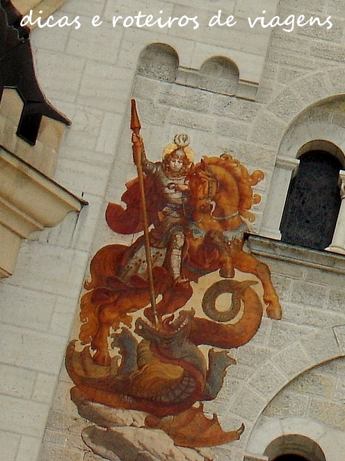 | Detalhe da fachada do Neuschwanstein: São Jorge, matando o dragão. |